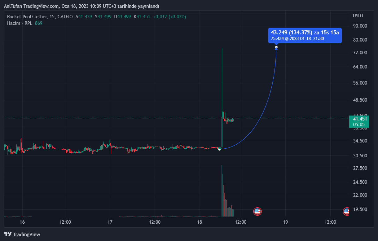 Rocket Pool’u (RPL) listeleyecek olan popüler borsa, bugün itibariyle RPL’nin volatil bir şekilde yükseliş yaşamasını başarmış durumda. Kısa bir süre içerisinde yüzde 130 oranında değer kazanan RPL, şuan tekrardan düşüşe geçti.