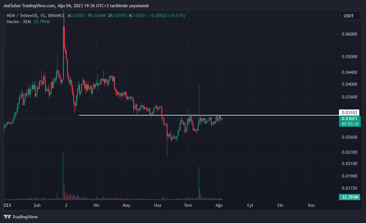 Haberimizin yazıldığı esnada 0.030 dolar seviyelerinden işlem gören XEM, son süreçte kademe kademe değer kazanmaya devam ediyor.