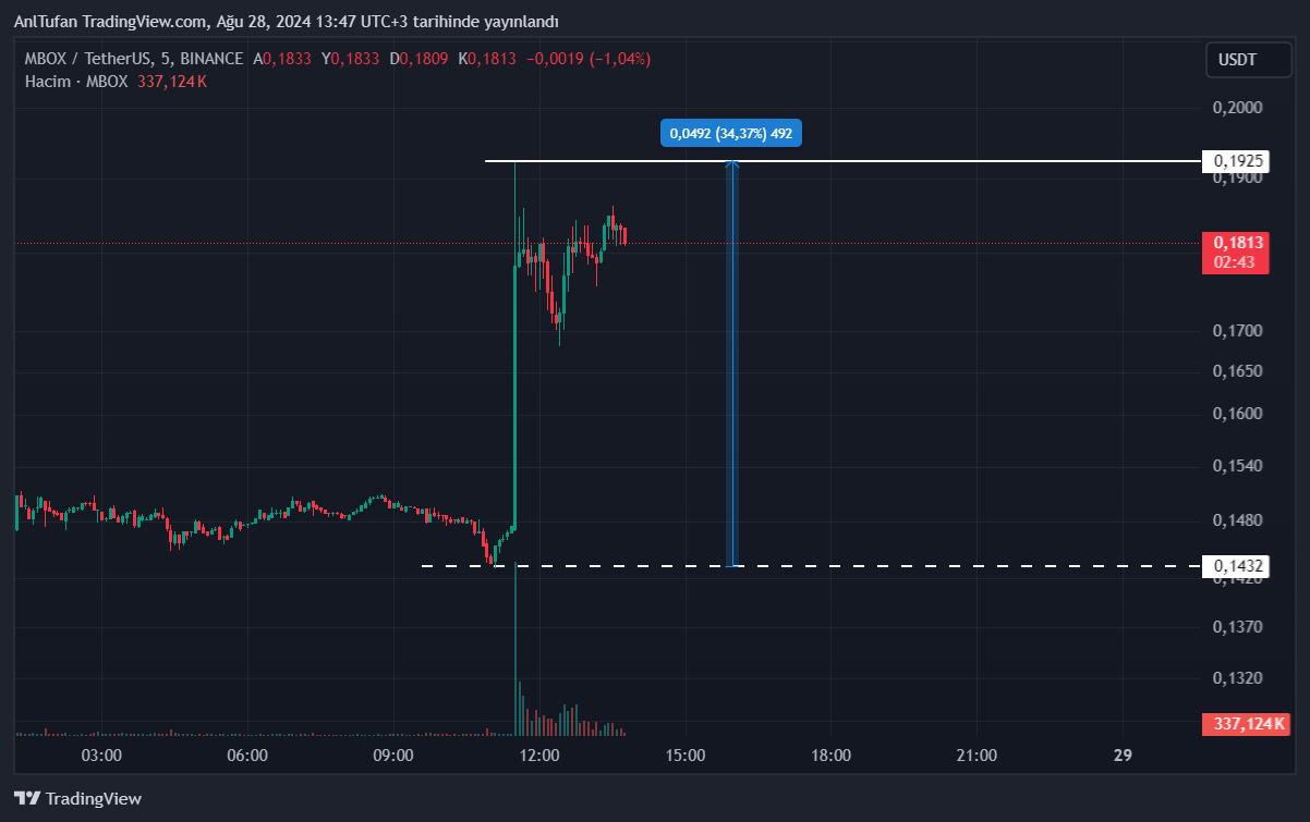 Bu alınan karar sonrasında MBOX fiyatında ani yükselişlerin meydana geldiği görüldü. Popüler altcoin kısa bir süre içerisinde Binance vadeli listelemesi ile birlikte %33’lük bir yükseliş yaşadı.