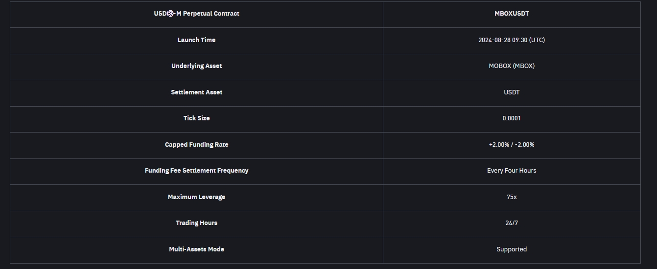 Popüler kripto para borsası Binance, MBOX vadeli listeleme duyurusunda başlıca şu bilgileri aktardı: