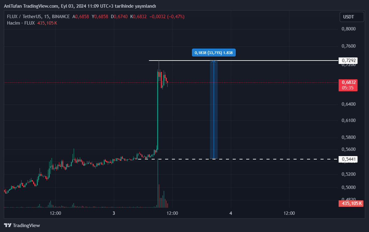 Bu gelen haber ile birlikte FLUX fiyatında dev bir sıçrama yaşandı. Dakikalar içerisinde %33 oranında değer kazanmayı başaran FLUX, bugünün en çok yükselen altcoin’lerinden bir tanesi oldu.
