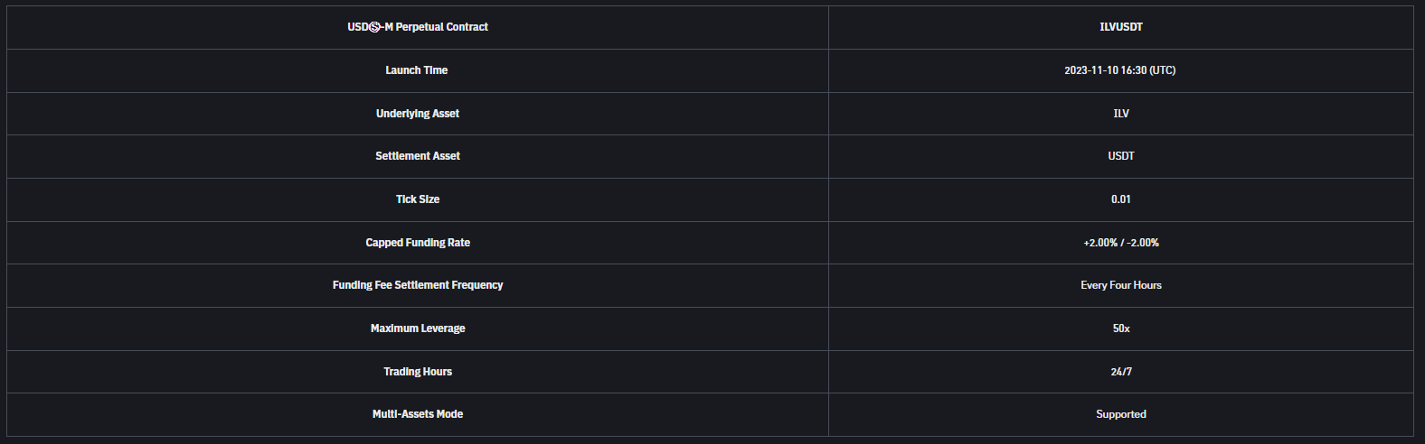 Bugün itibariyle ise işlem hacmine göre dünyanın en büyük kripto para borsası Binance, ILV isimli altcoin’i vadeli piyasada listeleyeceğini duyurdu.