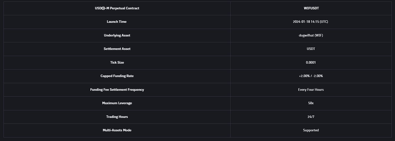 İşlem hacmine göre dünyanın en büyük kripto para borsası Binance, aldığı kararlar ile kripto varlıkların fiyat hareketlerini etkiliyor. Popüler borsa dakikalar önce ise Dogwifhat (WIF) isimli bir meme coin‘i vadelide listeleme kararı aldı.