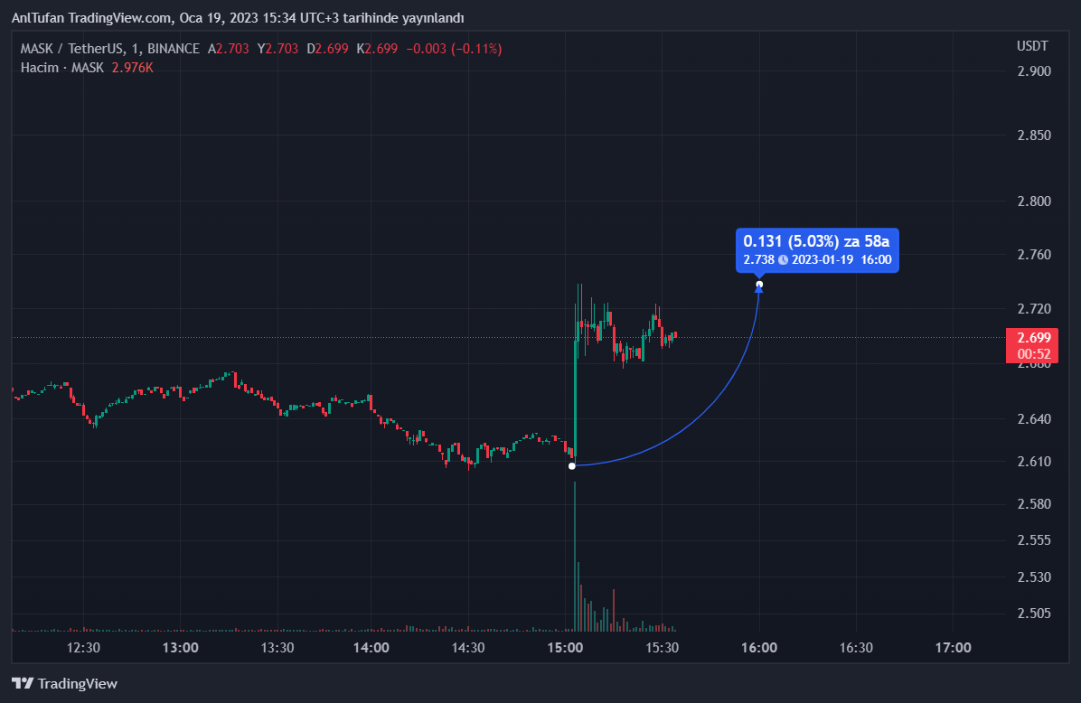 Kısa bir süre içerisinde yüzde 5 oranında değer kazanan MASK, ilerleyen saatlerde Bitcoin’in de toparlanmasıyla birlikte çok daha büyük yükselişler yaşayabilir.