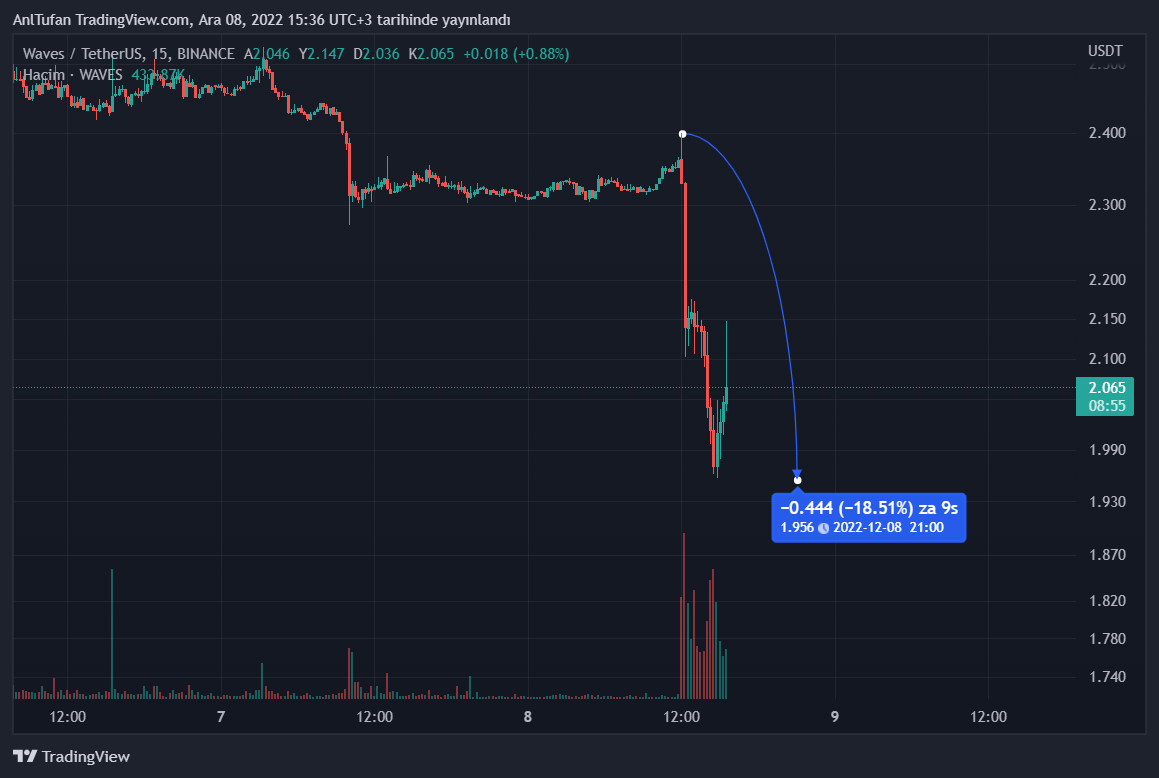 Kısa bir süre içerisinde yüzde 20’ye yakın düşüş yaşayan WAVES, her ne kadar son dakikalar toparlanmaya çalışıyor olsa da, halen başarılı olamamış durumda.