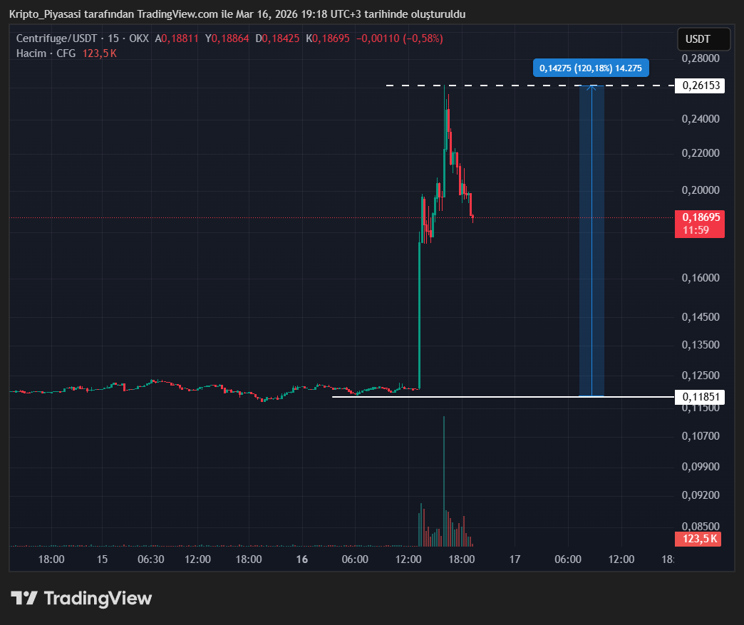 - Listeleme: Binance, Centrifuge (CFG) tokenini 16 Mart 2026 saat 13:00 (UTC)’de spot piyasada listeleyecek.