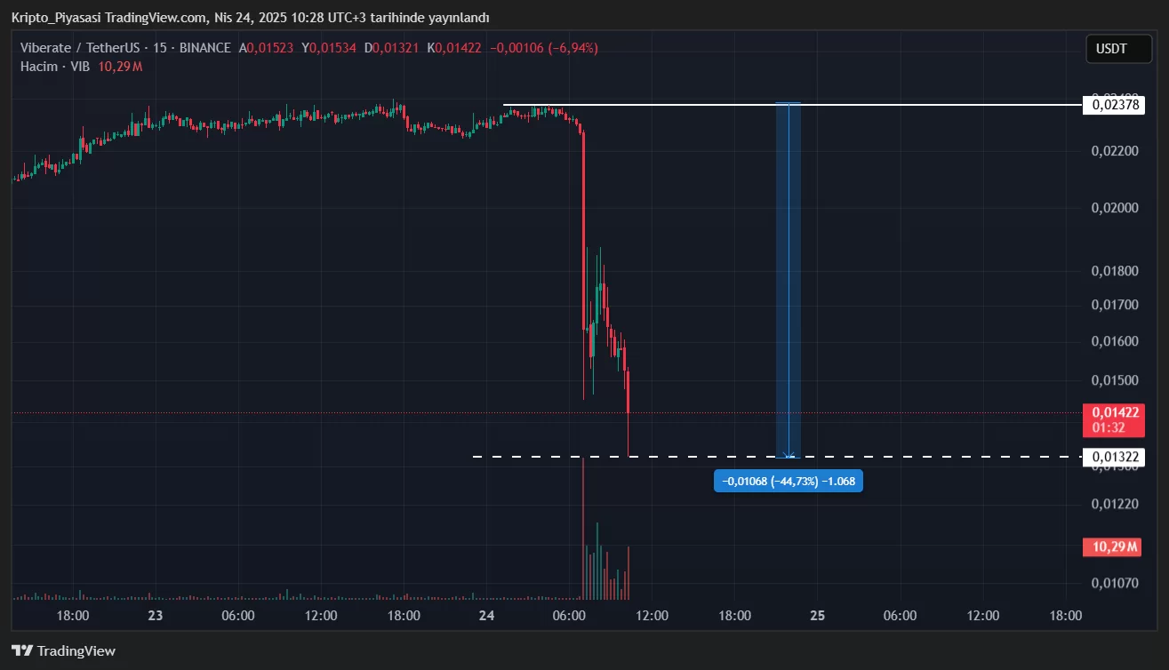 Binance’in bu delist kararı sonrasında yukarıdaki altcoin‘lerde sert düşüşler yaşandı. En büyük düşüşü ise yoğun satış baskısıyla karşılaşıp -%44 oranında değer kaybeden VIB yaşadı.