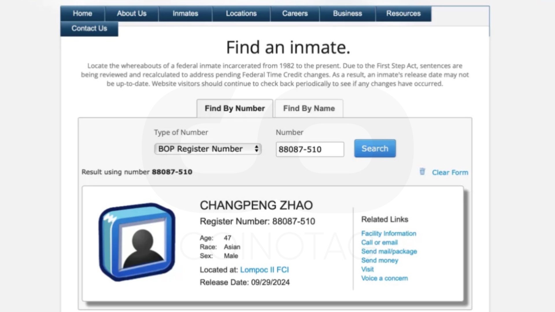 SeaTac FDC yerine Kaliforniya’da bulunan bir federal hapishane olan Federal Correctional Institution, Lompoc II’ye (FCI Lompoc) giren CZ, buradan da 29 Eylül tarihinde çıkması bekleniyor.