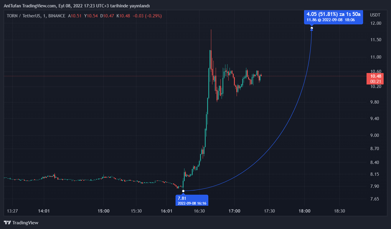 Coinbase borsasının aldığı bu kararın ardından Tornado Cash’in yerel coini TORN, dakikalar içerisinde sert bir şekilde yükselişe geçtiği görülüyor.