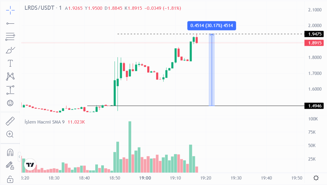 Bu gelişme sonrasında LRDS fiyatında ani yükselişler meydana geldi. Bugün çıkış yapan LRDS, Coinbase listeleme müjdesi sonrasında %30 oranında değer kazanında.