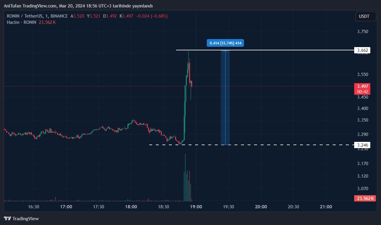 Bu son gelen listeleme hamlesi ile birlikte RONIN’in ani bir yükseliş yaşadığı gözlemlendi. 3.24 dolardan 3.66 dolara yükselmeyi başaran RONIN, kısa bir süre içerisinde %12 oranında değer kazandı.