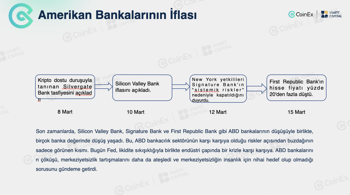 Mart 2023 itibarıyla Fed’in kümülatif faiz artırımının 450 baz puana ulaşması, hazine bonosu getirisinde hızlı bir yükselişe neden oldu. Bu arada, daha önce gevşek likidite koşullarında büyük miktarlarda satın alınan hazine tahvilleri büyük bir değer kaybına uğradı ve satılmaya hazır (AFS) olarak sınıflandırılan tahviller dalgalı zararlar gördü. Sonunda, bazı bankalar bir hücum yaşadı ve sonunda iflas etti ve iflas başvurusunda bulundu. İflasların ardından Fed ve Hazine ortak açıklama yaptı. Halkın güvenini istikrara kavuşturma çabalarına rağmen, makro ortamın iyi durumda olmadığı gerçeği inkar edilemez.