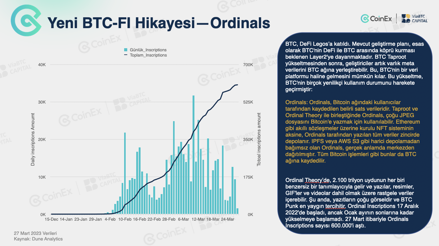 Bir noktada BTC fiyatı 16.000 ila 18.000 dolar arasında dalgalandı. Bununla birlikte, Ocak 2023’te iki aylık durgunluğun ardından hem BTC fiyatı hem de işlem hacmi yükseldi. Mart ayının sonunda, BTC fiyatı 28.000 doları bile aştı ve o zamandan beri bu fiyat etrafında dalgalanıyor. Ayrıca BTC, DeFi Lego’larına katıldı ve yeni bir hikaye yazdı: BTC-Fi.