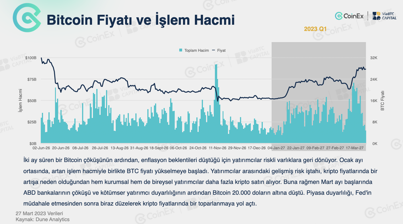 Buna rağmen Mart ayı başlarında ABD bankalarının çöküşü ve kötümser yatırımcı duyarlılığının ardından Bitcoin 20.000 doların altına düştü. Piyasa duyarlılığı, Fed’in müdahale etmesinden sonra biraz düzelerek kripto fiyatlarında bir toparlanmaya yol açtı.
