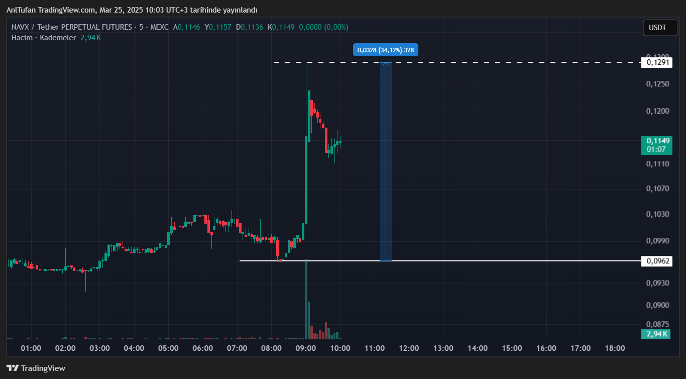 - NAVX/USDT spot ticareti 25 Mart 2025 günü saat 10:00’da UTC’de açılacak.