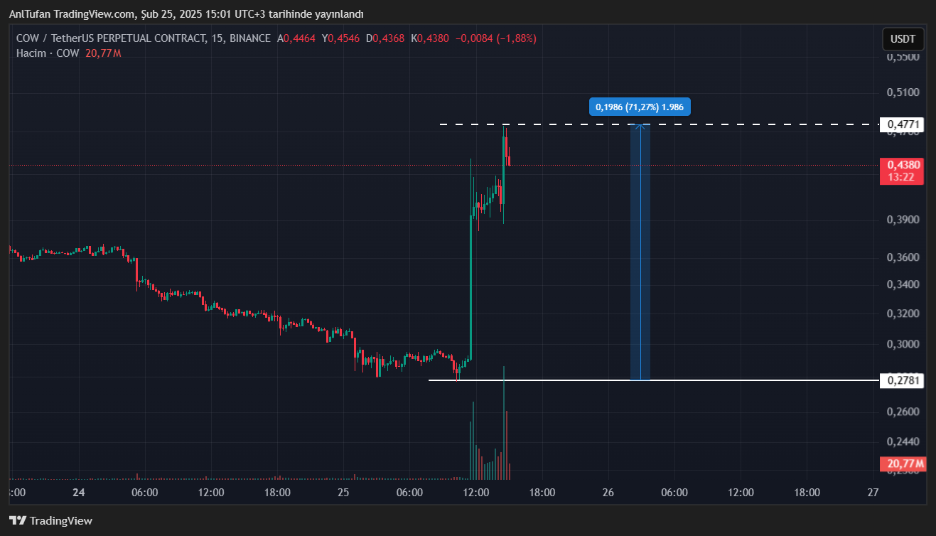 Bu duyuru sonrasında COW fiyatında ani yükselişlerin meydana geldiği görüldü. Çok kısa bir süre içerisinde %70 oranında artış yaşamayı başaran COW, kripto yatırımcılarının dikkatini çekti.