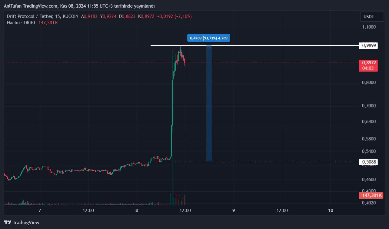 Son paylaşılan listeleme duyurusu ile birlikte DRIFT fiyatında %93’lük bir yükseliş meydana geldi. Halen bu yükselişlerini korumayı başaran DRIFT, yatırımcıların dikkatini üzerine çekti.