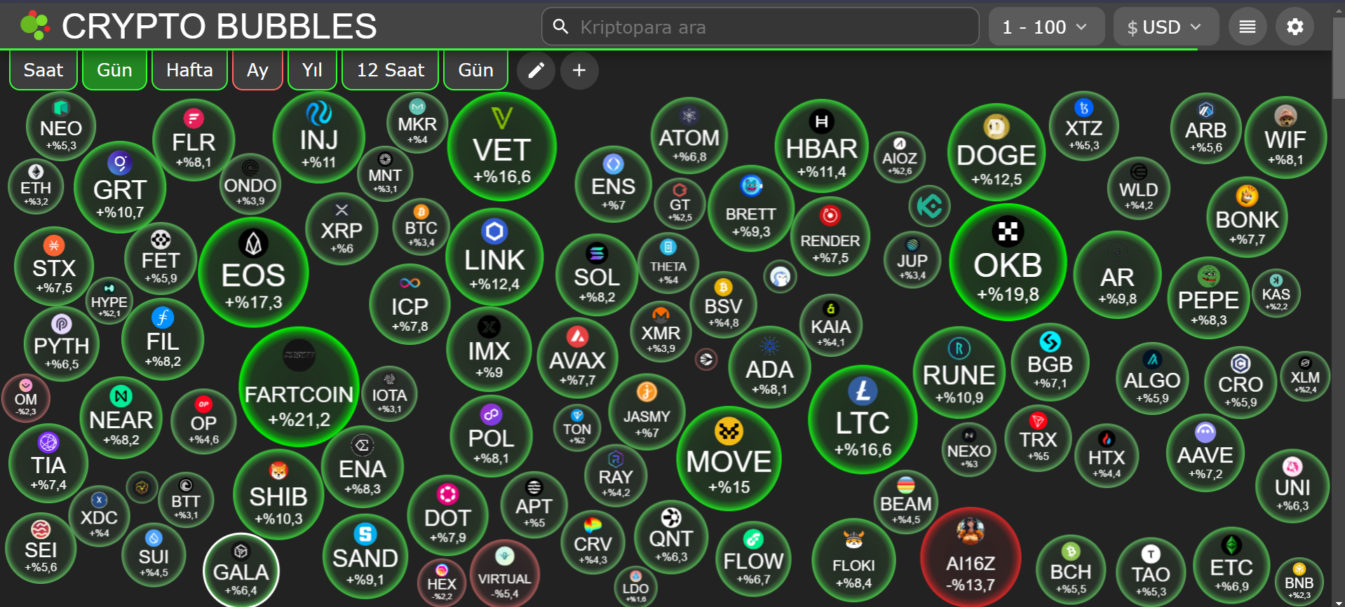 Yine de bugün özelinde DOGE, MOVE, EOS, LINK, LTC ve OKB gibi bazı altcoin’ler kayda değer artışlar yaşamayı başardı. Bu ürünlerdeki hareketlilik yatırımcıların dikkatini çekti.