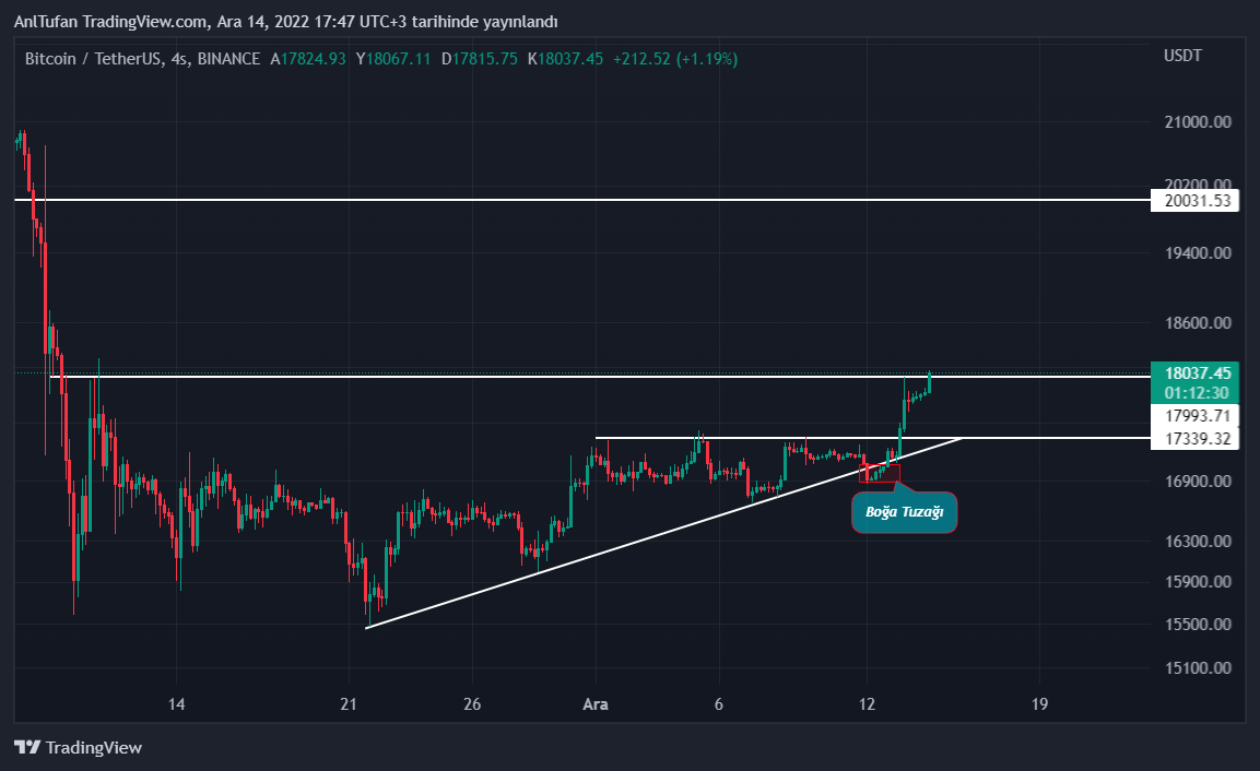 Şimdilik halen direnç seviyesinde yer alan BTC, ilerleyen saatlerde 18 bin dolar noktasını hacimli bir şekilde aşması halinde tekrardan ciddi yükselişler sergileyebilir.