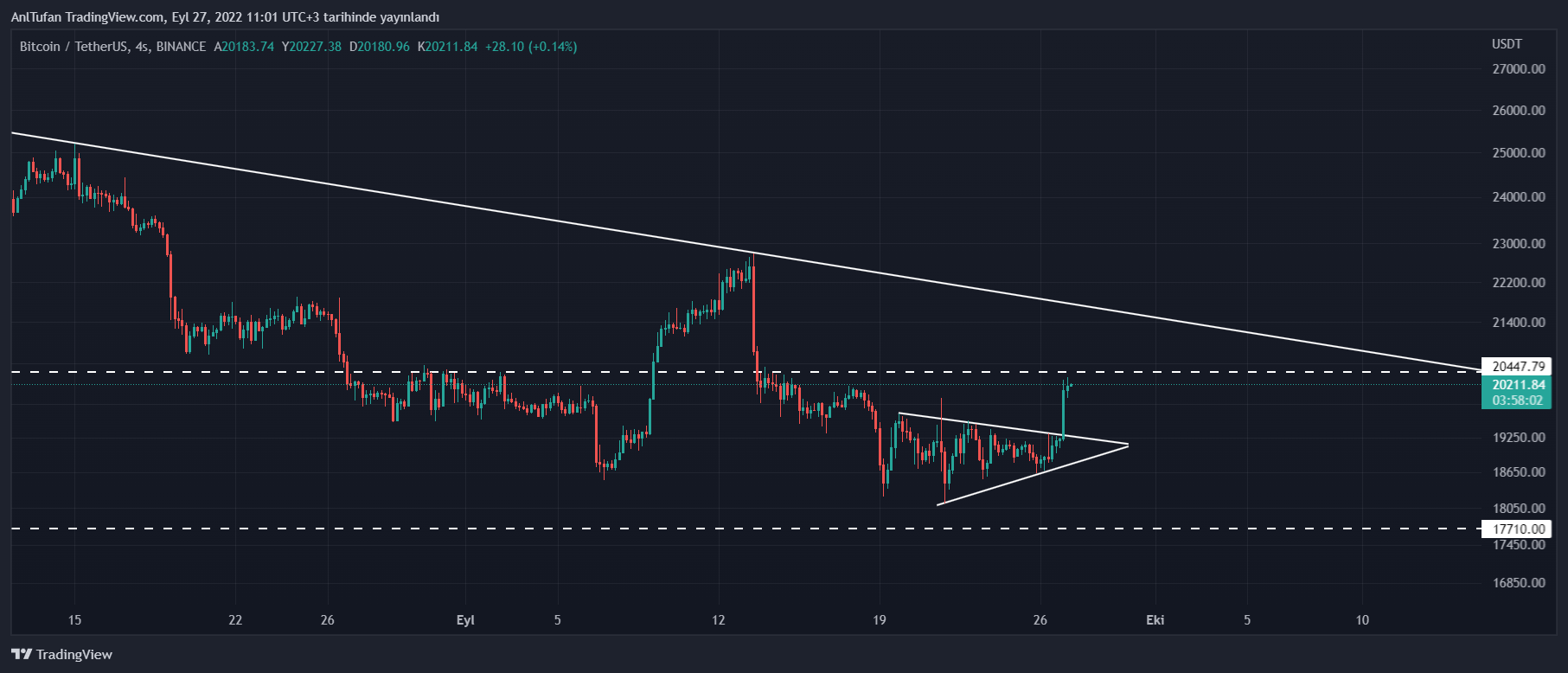 İlerleyen günlerde 20.400 doların kırılmasının ardından 21.800 dolar seviyesinde bulunan düşen trendine ulaşacak olan BTC, bu direnç noktasını aşmasıyla birlikte ise 25 bin dolara yükselebilir.