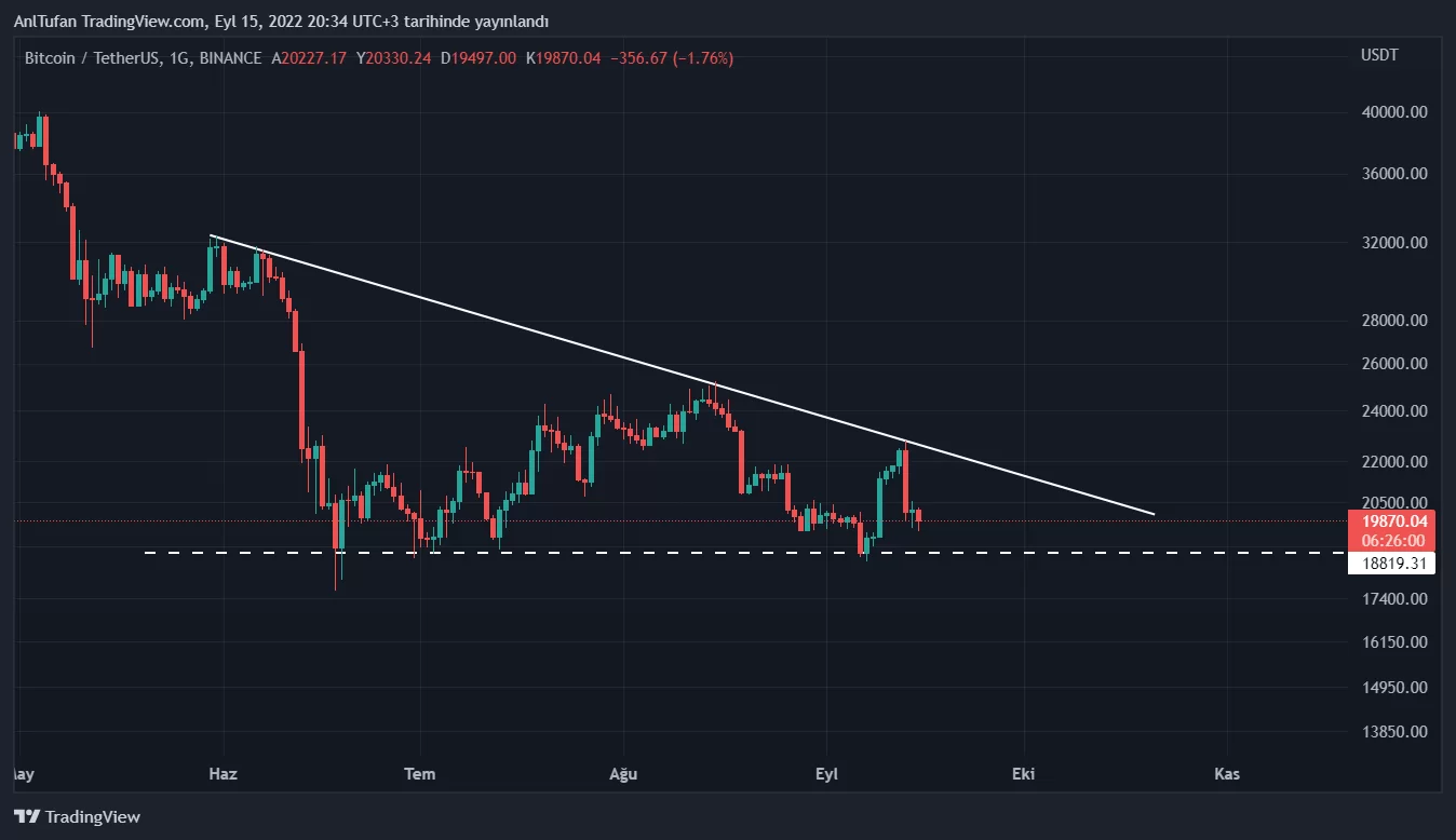 Bugün itibariyle 22.500 dolara denk gelen bu düşen trendin kırılımı ile birlikte 25 bin dolara yükselebilecek olan BTC, bu seviyeyi aşması halinde ise 30 bin doları hedefleyebilir.