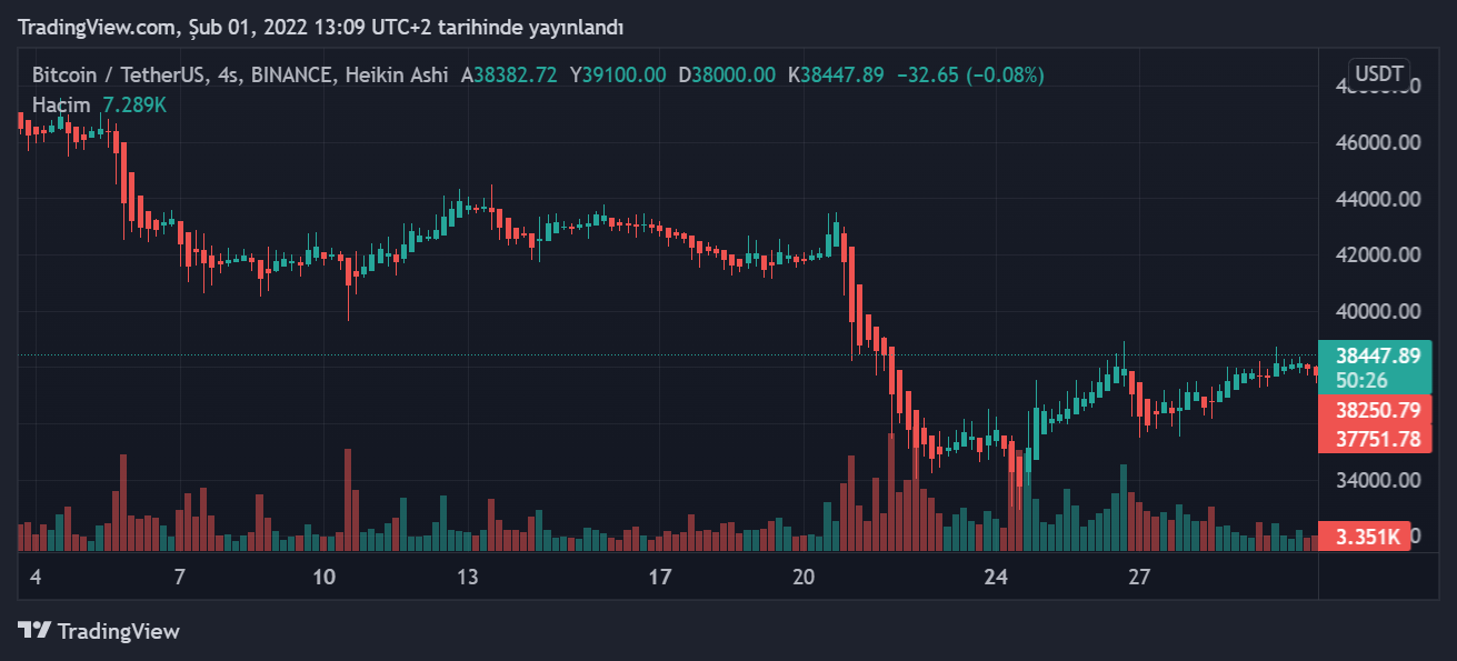 Bitcoin, haberin yazıldığı sırada 38.600 dolar seviyesinde işlem görüyor.