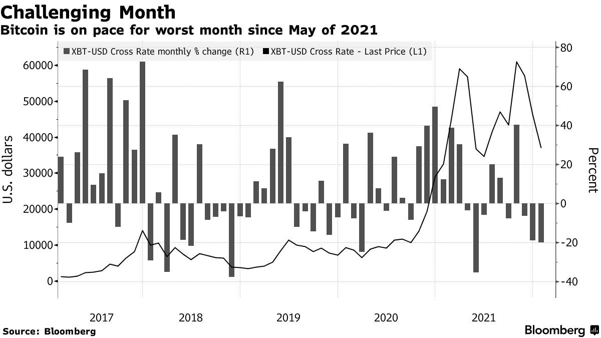 Bitcoin, Kasım 2021 yılında 69.000 dolar ile tüm zamanların en yüksek seviyesinde işlem görüyordu. Fakat, ocak ayına girmemizle birlikte 33.000 dolar seviyesine kadar düştü. Düşüşe sebep olarak gösterilen birinci etken, ABD Merkez Bankasının (FED) kripto para birimlerini riskli olarak görmesi ve faiz artırmaya yönelik aldığı kararlar olduğu düşünülüyor.