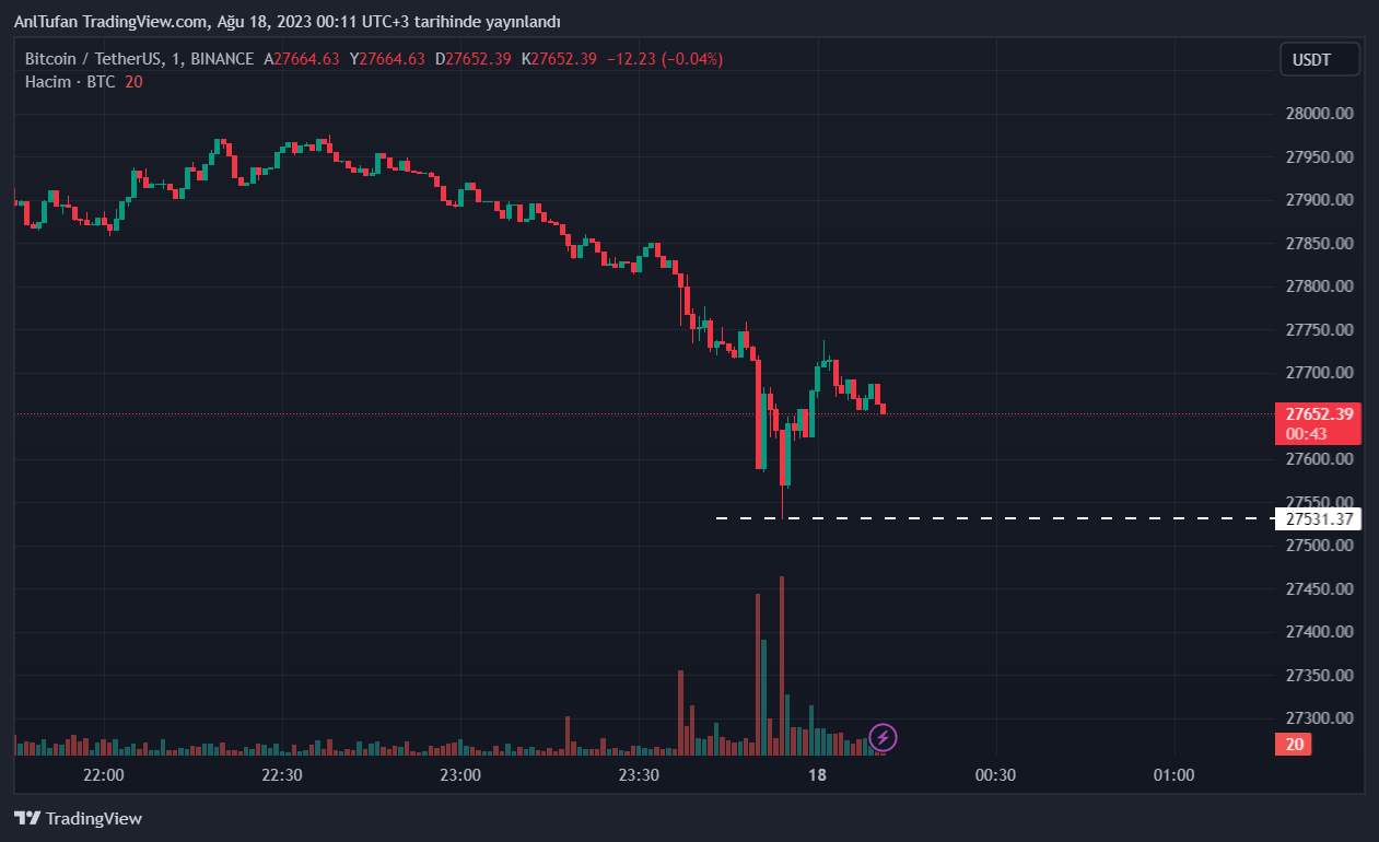 Bitcoin’in ilerleyen saatlerde 27.500 dolar desteğini kaybetmesi, 25 bin dolara kadar bir düşüş getirebilir.