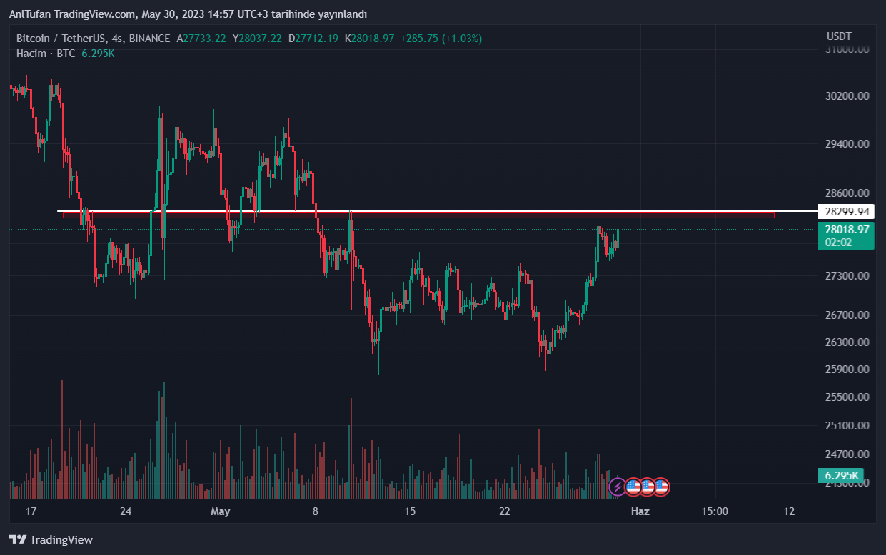İlerleyen günlerde 28.300 dolar direncini aşması durumunda 30 bin doları hedefleyecek olan BTC, kısa vadede 30 bin doları aşması için Amerikan Merkez Bankasının (FED) faiz artış serüvenini sonlandırması gerekiyor.