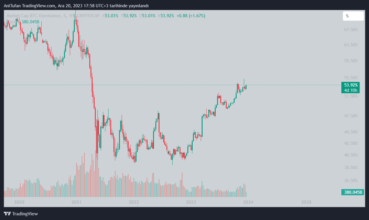 Önümüzdeki süreçte BTC dominansının %50’li seviyelerin altına sarkması, altcoin’lerin sert yükselişler gerçekleştirmesini sağlayabilir.