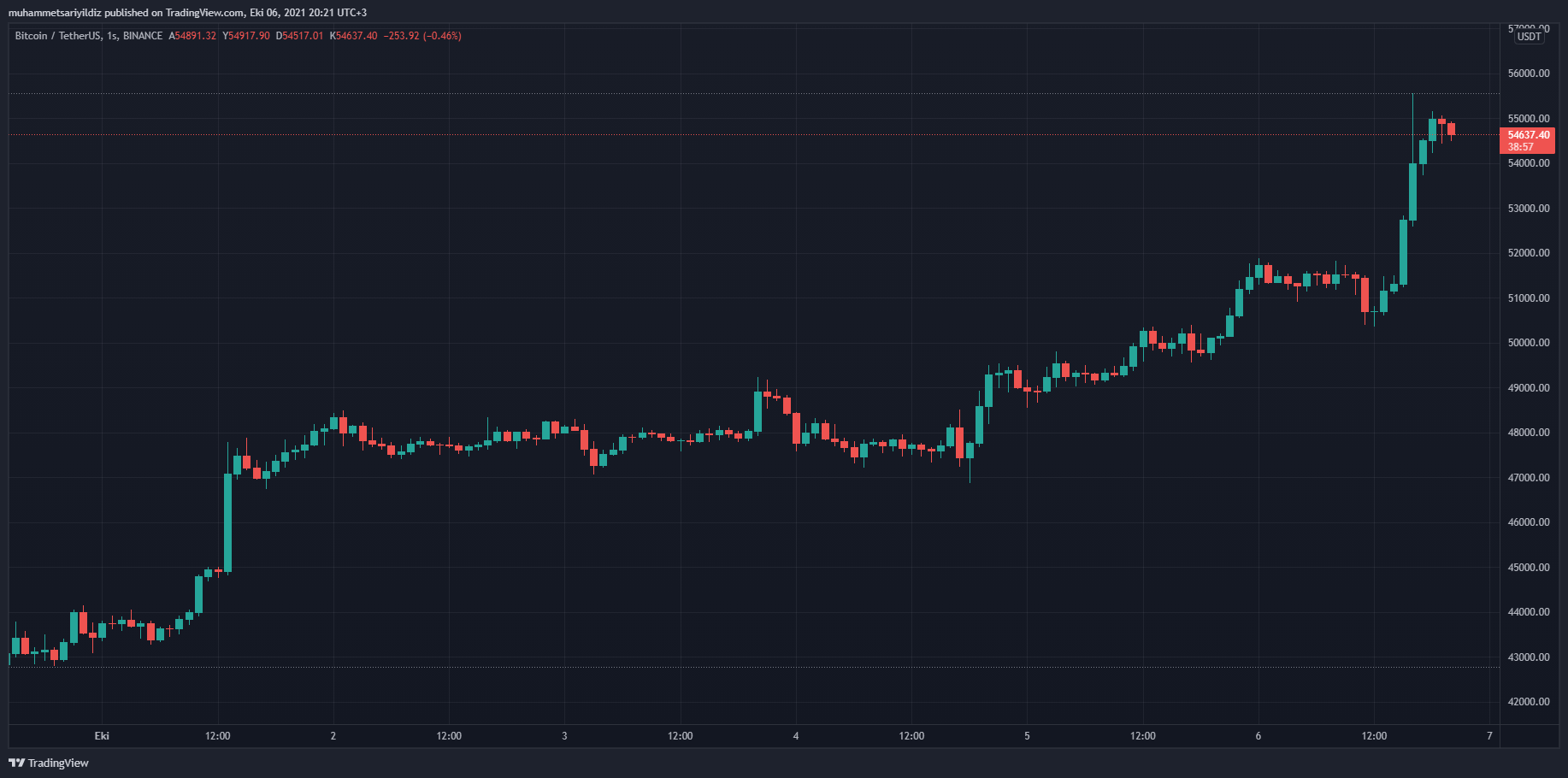 Kripto piyasasını bugünlerde domine eden SEC’in olumlu Bitcoin açıklamaları ve dünya para hakimiyetiyle anılan George Soros’un yatırım firması Soros Fund Management’ın BTC ve altcoin alımlarını duyurması 55.000 doların üzerini görmesi için itici güç oldu.