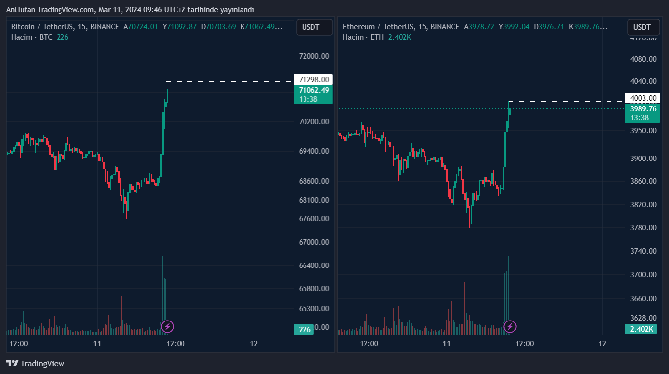 Haberimizin yazıldığı esnada hala 71 bin doların üzerinde yer alan BTC, geçtiğimiz günlerdekinin aksine bu sefer şimdilik ATH tazelemesiyle birlikte anında sert bir düşüş yaşamadı.