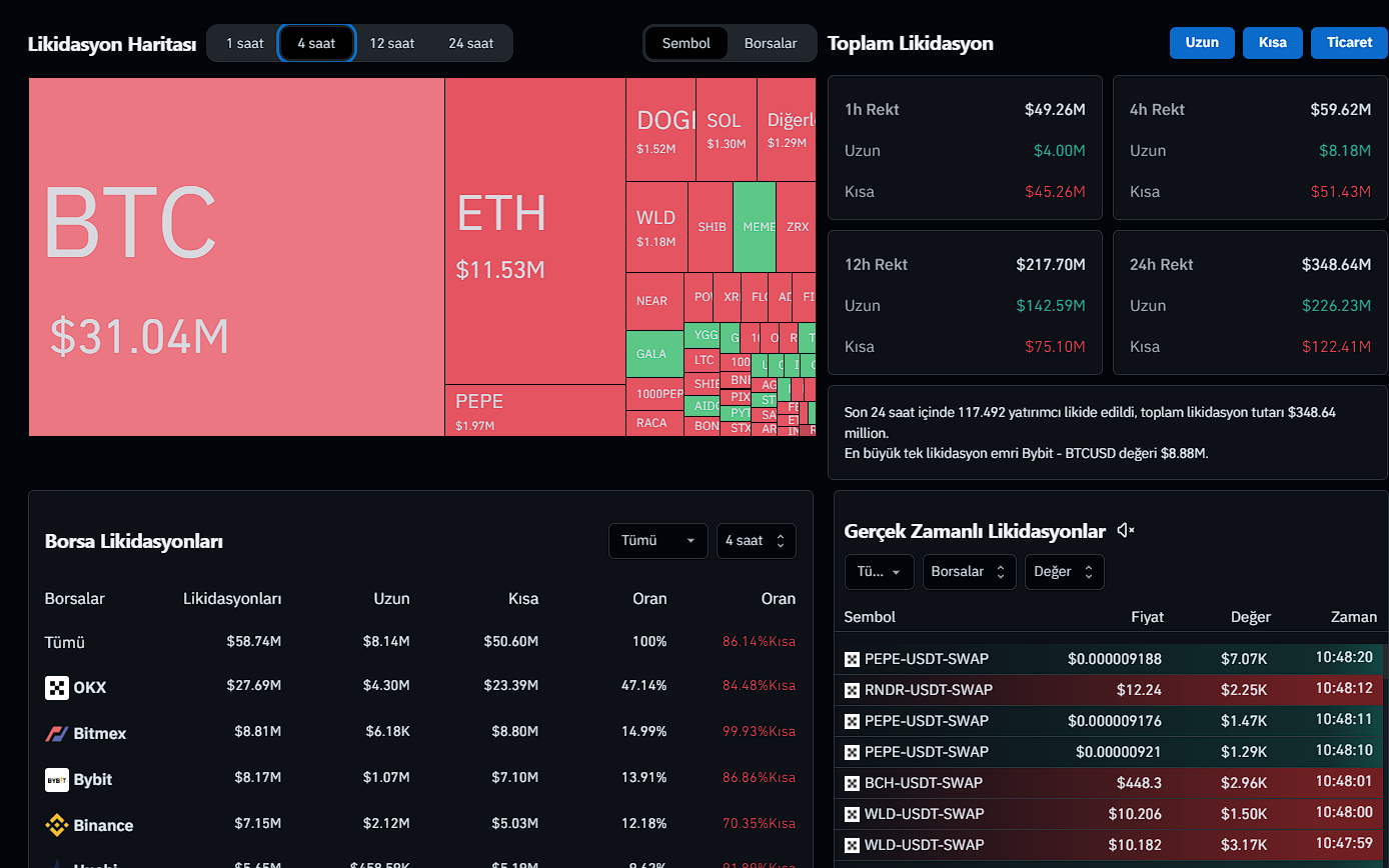 Bitcoin ve ETH’de yaşanan bu artışlar sırasında son 1 saat içerisinde toplamda 49.5 milyon dolarlık bir likidasyon gerçekleşti. Son 4 saatteki likidasyon oranları ise 60 milyon dolara ulaştı.