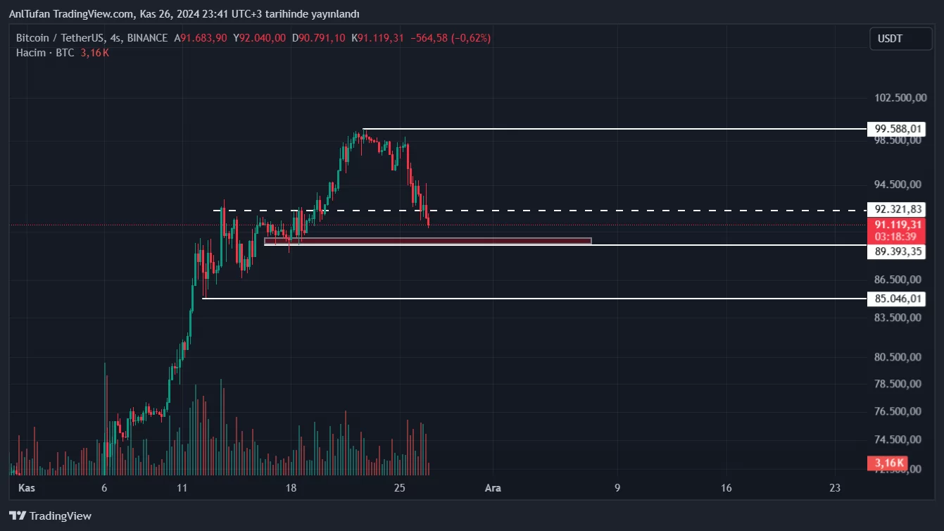 Bu desteğin kırıldığı kötü senaryoyu göz önüne aldığımızda ise karşımıza 85 bin dolar desteği çıkıyor. BTC 89 bin – 92 bin dolar destek bölgesini kaybetmesi durumunda 85 bin dolar desteğinden güç bulacaktır.