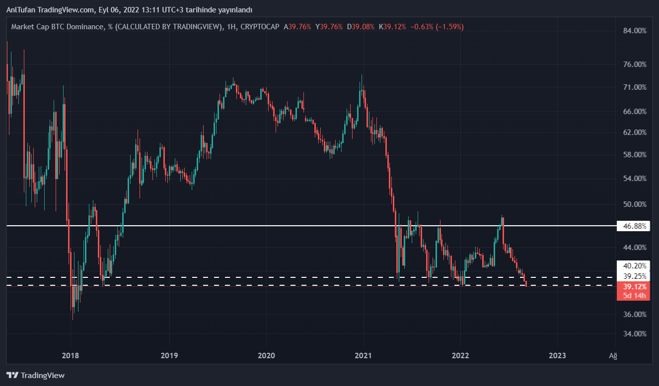 Her ne kadar Bitcoin yükselirken dominance tablosunun yükselmesi altcoin’lerin düşmesine neden olmayacak olsa da, Bitcoin’in değer kaybettiği esnada piyasa hakimiyeti yükselirse, tarihin en büyük altcoin çöküşlerinden bir tanesi yaşanabilir.