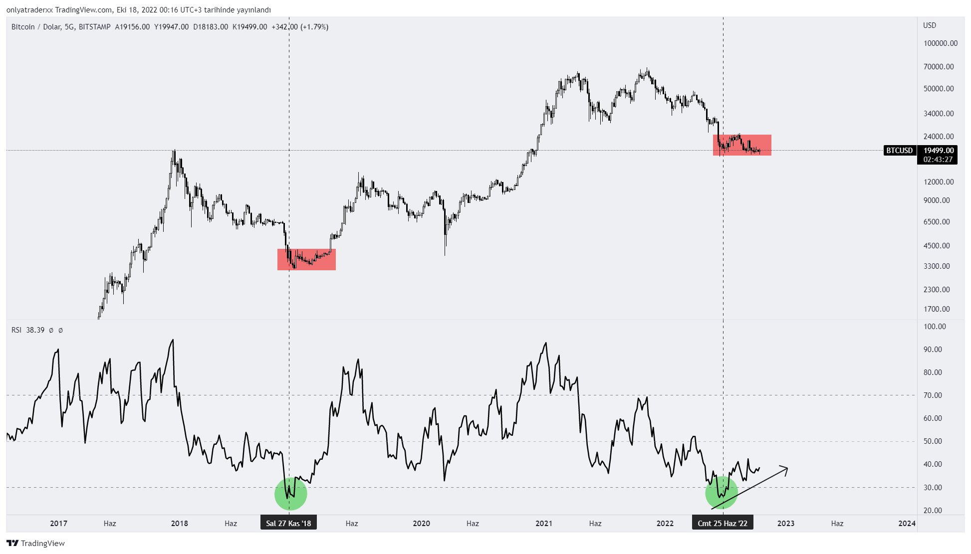 Bitcoin’in (BTC) 2018 yılında yaşadığı ayı sezonunun son dönemlerine benzer hareketler sergilediğinin altını çizen anonim analist, tarihin tekerrür edebileceğini vurgulamakta.