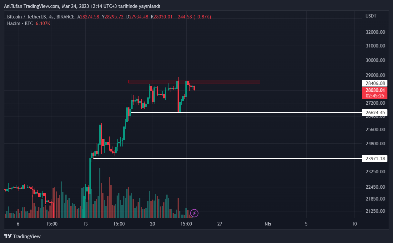 Lider kripto para birimi Bitcoin’in 28.400 – 28.800 dolar direncinin üzerinde bir günlük kapanış yapması ise durumların değişmesini sağlayacaktır. Böyle bir senaryoda BTC’nin 30 bin doları aşması bekleniyor.