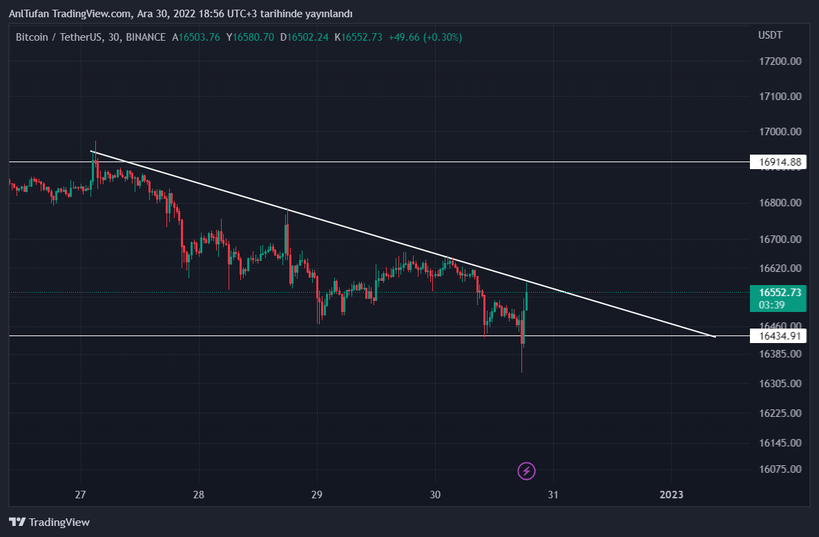 Lider kripto para biriminin 16.580 dolar seviyesinde yer alan düşen trendini kıramaması ise ilerleyen saatlerde 16.434 dolar desteğine gerilemesine neden olabilir.