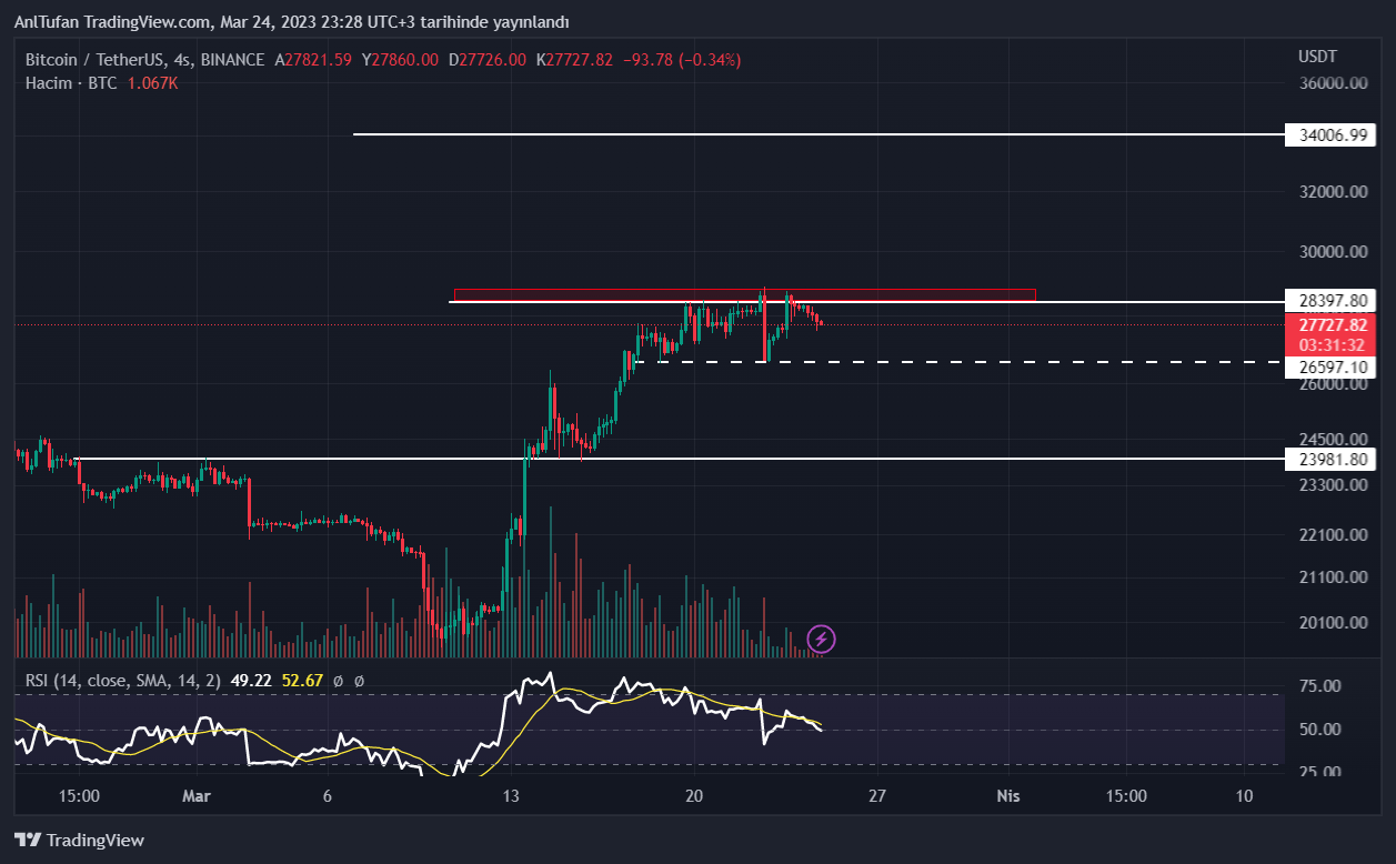İlerleyen günlerde yaşanabilecek olası düşüş senaryosunda ise okurlarımızın 26.500 dolar ve 24 bin dolar major destek seviyelerini takip etmeleri önerilir.