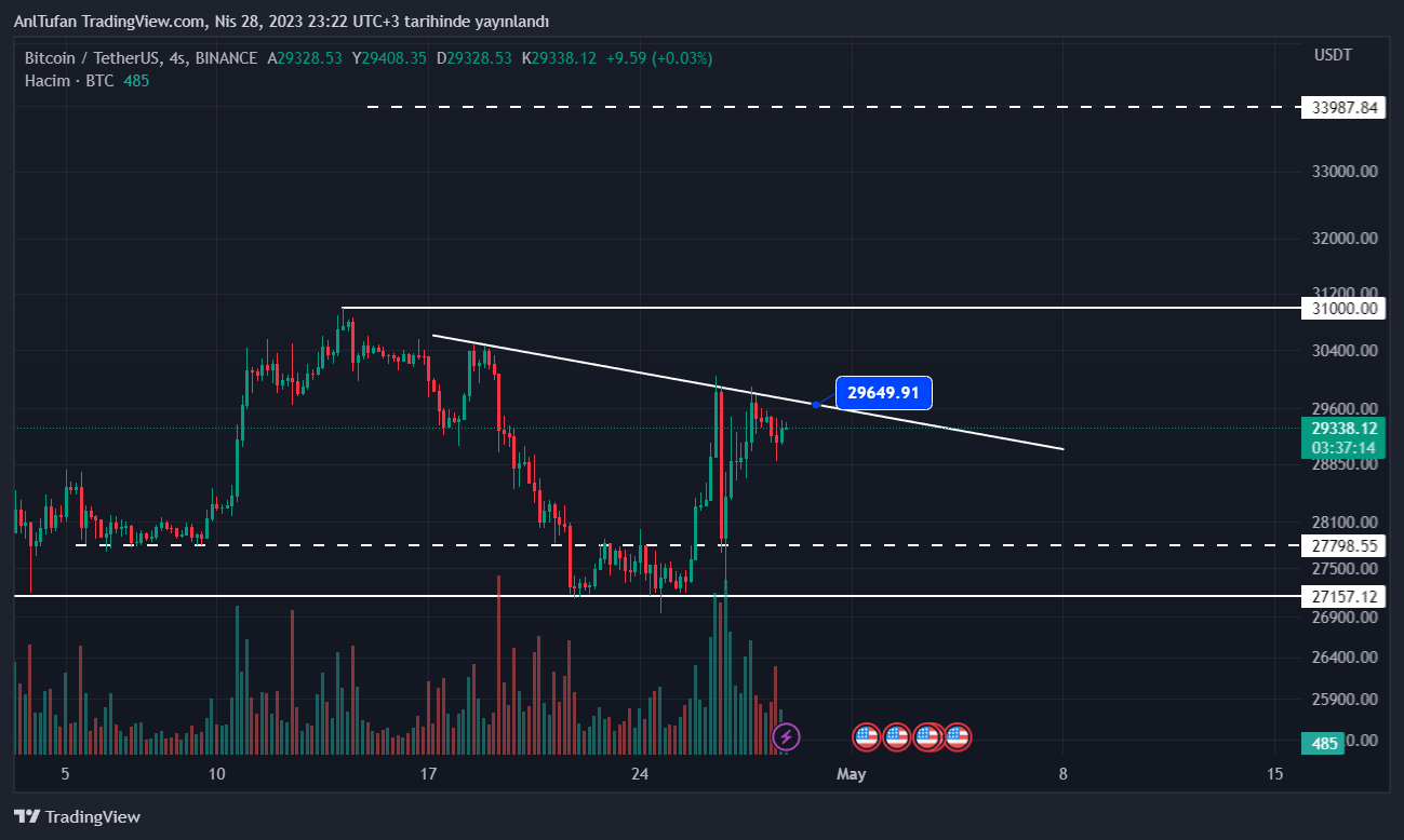 29.650 dolar seviyelerinde yer alan minor düşen trendin kırılması ise Bitcoin’in 31 bin dolar son zirve seviyelerine kadar bir yükseliş yaşamasını sağlayacaktır.