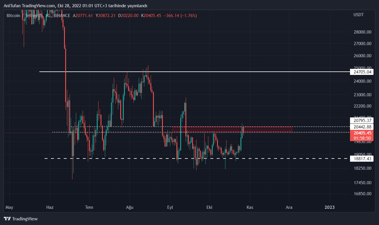 TSİ 03.00’da ise Bitcoin’de günlük kapanış gerçekleşecek. Bu kapanış öncesinde lider kripto para biriminin 20 bin – 20.200 dolar desteğinin altına sarkmaması gerekiyor.
