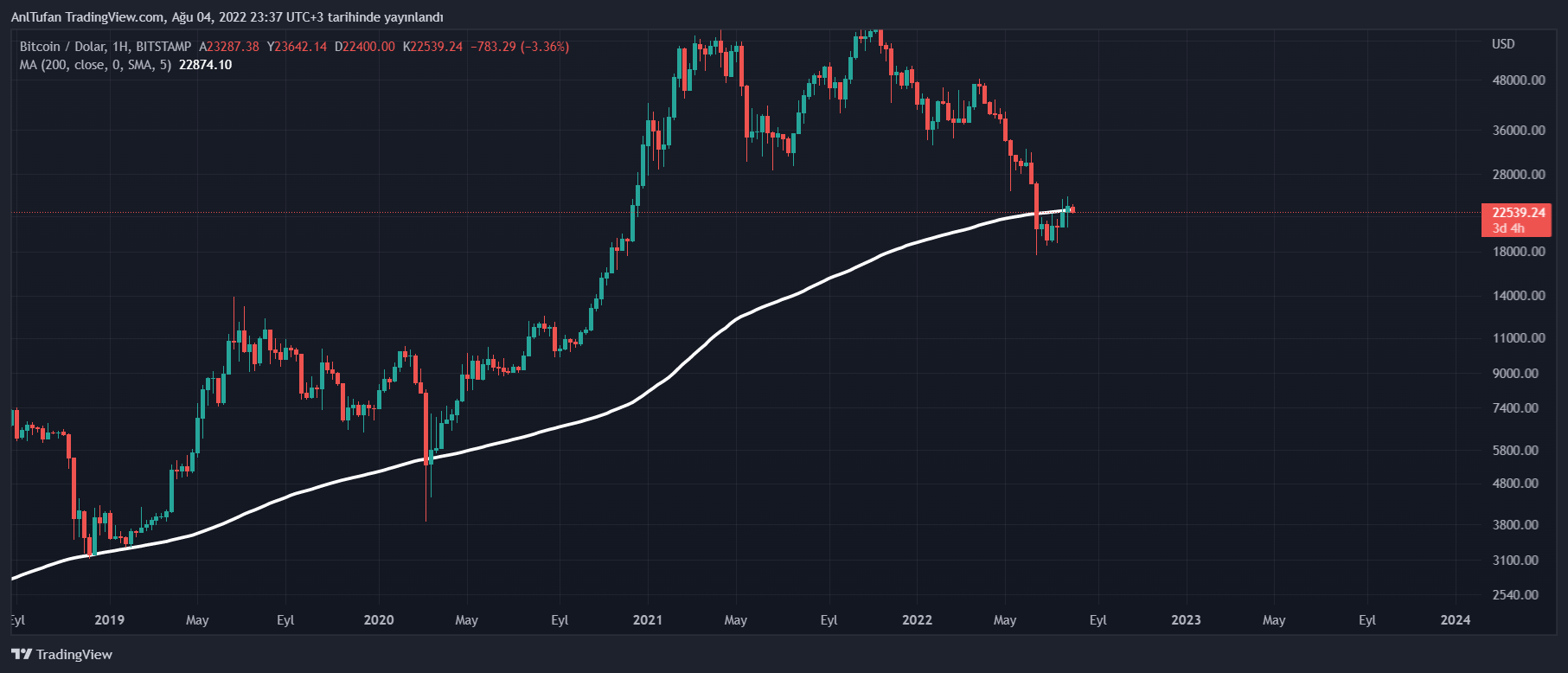 Geçtiğimiz hafta itibariyle 200 haftalık hareketli ortalama seviyesini aşmayı başaran Bitcoin, bugün itibariyle ABD’nin aldığı kritik kararlar sonrası 22.800 dolar desteğini kaybetmiş durumda.
