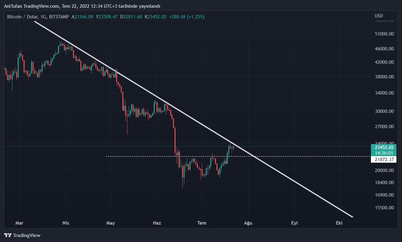 Çok uzun bir süredir düşüş yaşayan Bitcoin‘de yükseliş trendinin bu denli kısa sürmesi çok olası gözükmemekte. İlerleyen saatlerde BTC‘nin düşen trend seviyesi olan 24.200 doları aşacağı tahmin edilmekte.