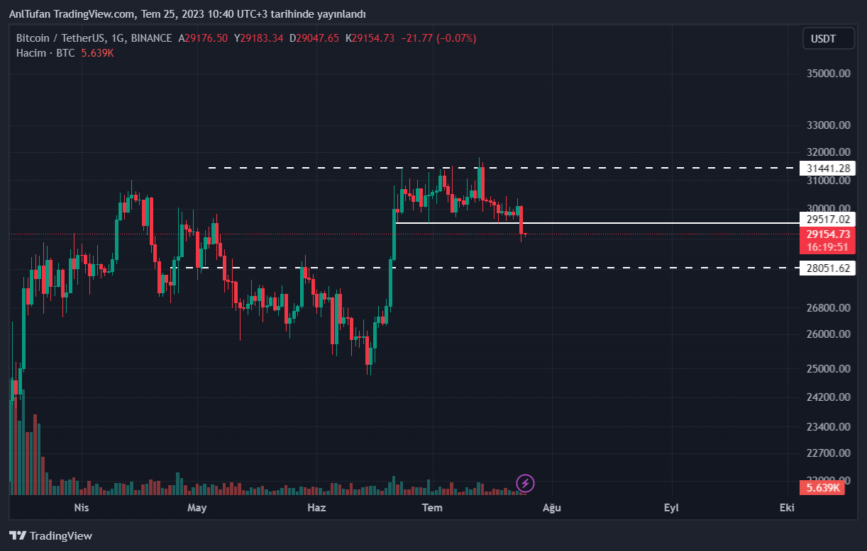 Şuan itibariyle kripto para yatırımcılarının gözlerinin 29.500 dolar seviyesinde olduğu görülüyor. Lider kripto para birimi Bitcoin’in (BTC) bu seviyeyi geri kazanması yeni yükselişler getirecek olsa da, geri kazanamaması sert düşüşleri tetikleyecektir.