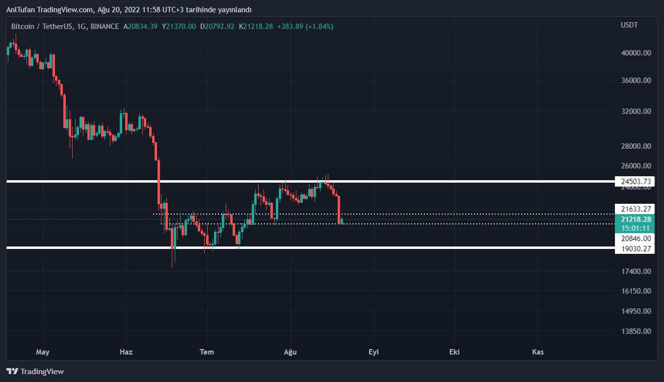Bitcoin‘de yaşanan sert düşüşler an itibariyle sona ermiş gibi gözüküyor. 20.800 – 21.500 dolar destek bölgesinde tutunmayı başaran Bitcoin, ilerleyen günlerde tekrardan bir kırılım yapması gerekmekte.