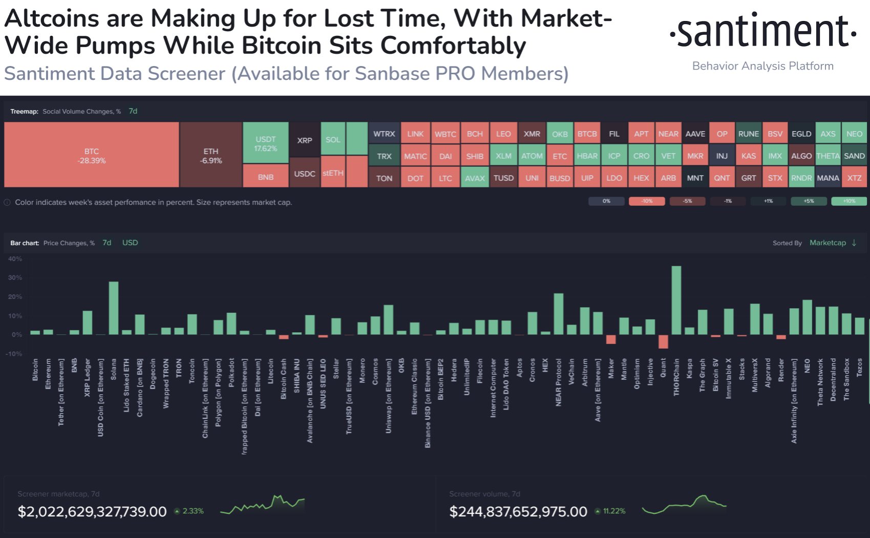 Başarılı bir veri sağlayıcısı olan Santiment’in aktardığı bilgilere göre orta ölçekli olarak tasvir edilen altcoin’lerde yükselişler hızlanmaya başladı. Santiment konu ile ilgili şu bilgileri paylaştı: