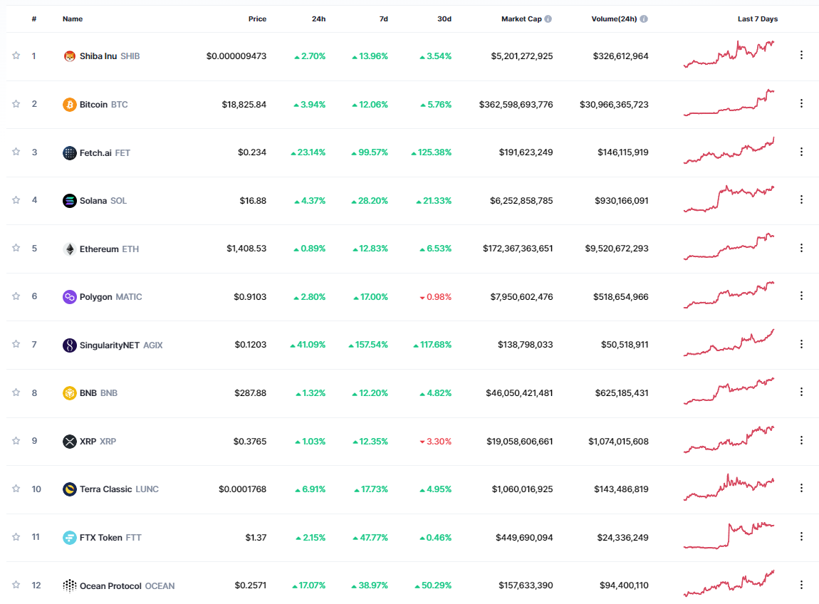 Shiba Inu ve Bitcoin haricinde aşağıda yer alan altcoin’lerin de son günlerde fazlasıyla popüler olduğu görülüyor:
