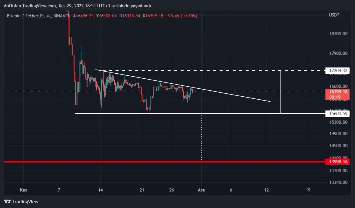 Bitcoin’in ilerleyen günlerde yeni bir yükseliş trendi başlatabilmesi için öncelikle 16.600 dolar seviyesinde yer alan düşen trendini hacimli bir şekilde kırması gerekiyor.