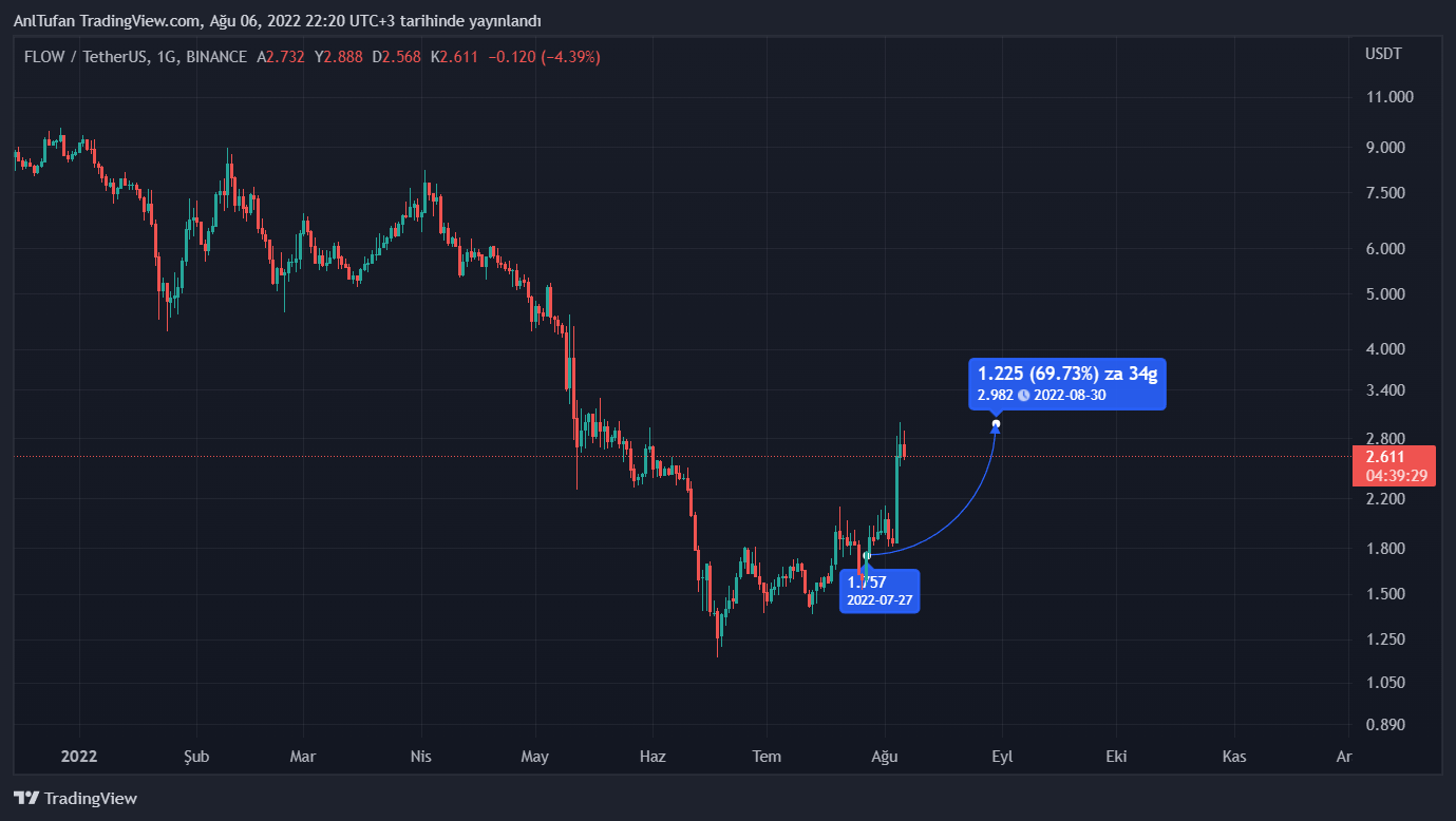 Yayın saati itibariyle 2.61 dolar seviyelerinde konumlanan FLOW, bu hafta içerisinde yüzde 70’e varan bir yükseliş yaşadı.