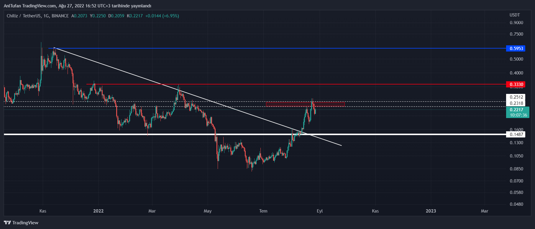 Haberimizin yazıldığı esnada 0.22 dolar seviyelerinden işlem gören Chiliz, bugün itibariyle yüzde 9’dan fazla değer kazandığı görülüyor.